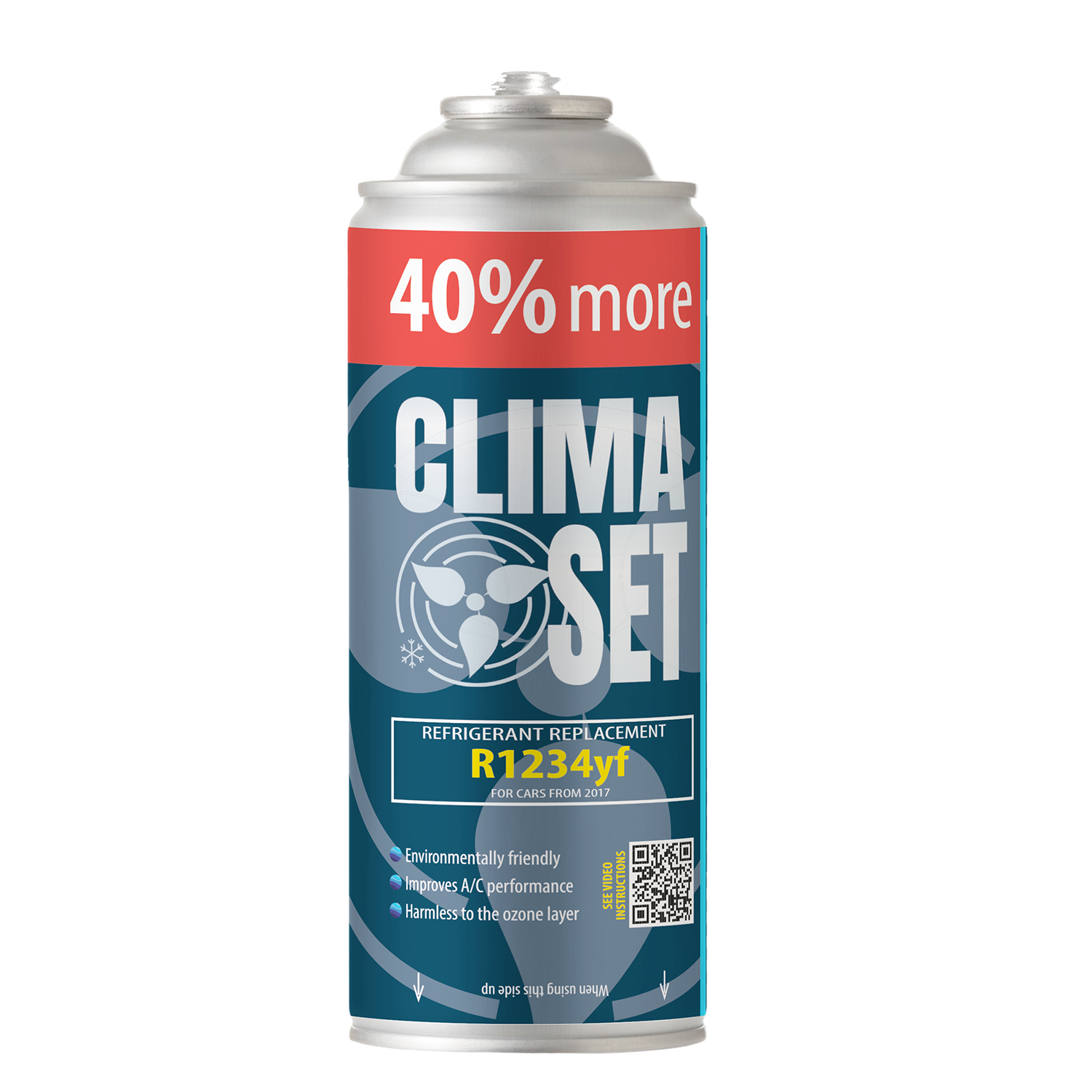Učinkovitost sredstva – limenka ClimaSet sadrži 235 g rashladnog plina, što odgovara 470 g R1234yf. Lakša mješavina radi učinkovitije i manje opterećuje klima-uređaj, čime se smanjuje potrošnja energije i produljuje vijek trajanja komponenti.